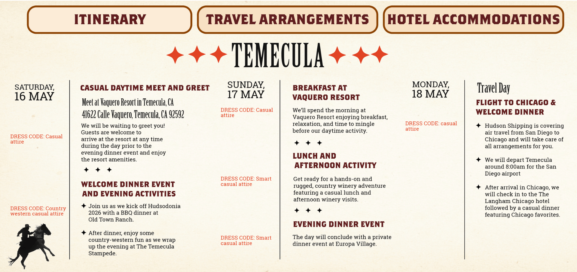 - After dinner, enjoy some country-western fun as we wrap up the evening at The Temecula Stampede.
